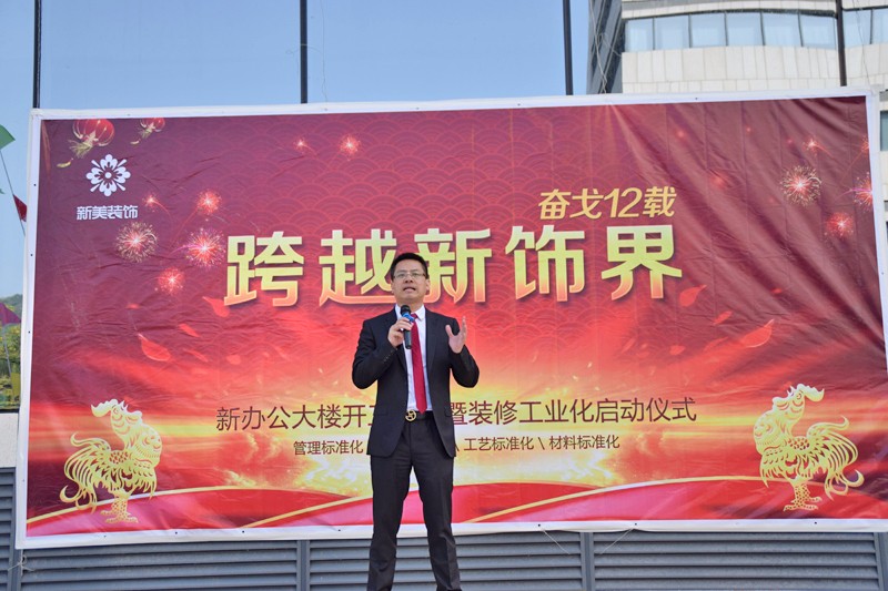 爆竹声声至,闻鸡起舞时。上午10点,本次仪式在悟空网官网入口装饰集团新办公大楼广场正式开始,仪式整体围绕氛围喜庆、执行简单、费用最低的要求,与装修工业化的核心价值形成呼应,那就是专业、高效和环保。李董在讲话中提到:“严格推行四大标准化,全力打造行业标杆案例,以后大家签单会更有效率……工人师傅要注意安全……”。